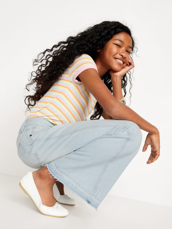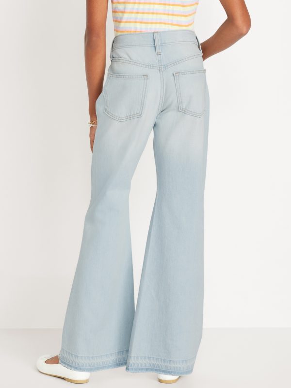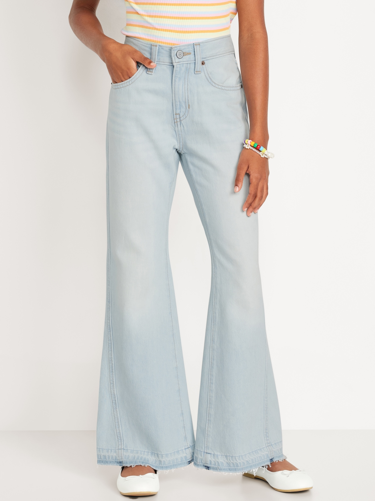 High-Waisted Baggy Frayed-Hem Flare-Leg Jeans for Girls