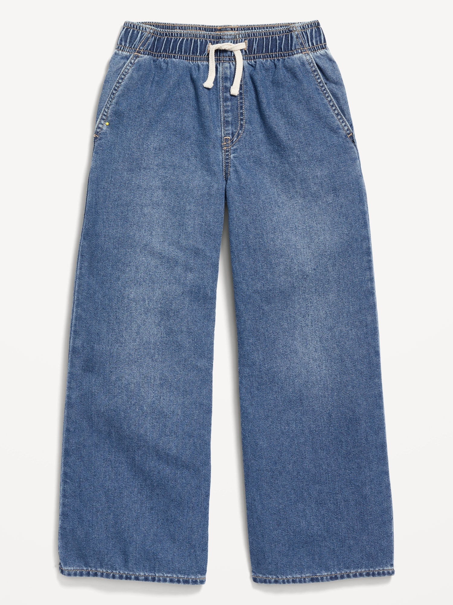 High-Waisted Baggy Wide-Leg Pull-On Jeans for Girls: elasticized waistband, high rise, functional drawstring, diagonal on-seam pockets, wide leg, #767108
