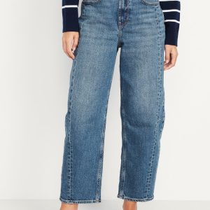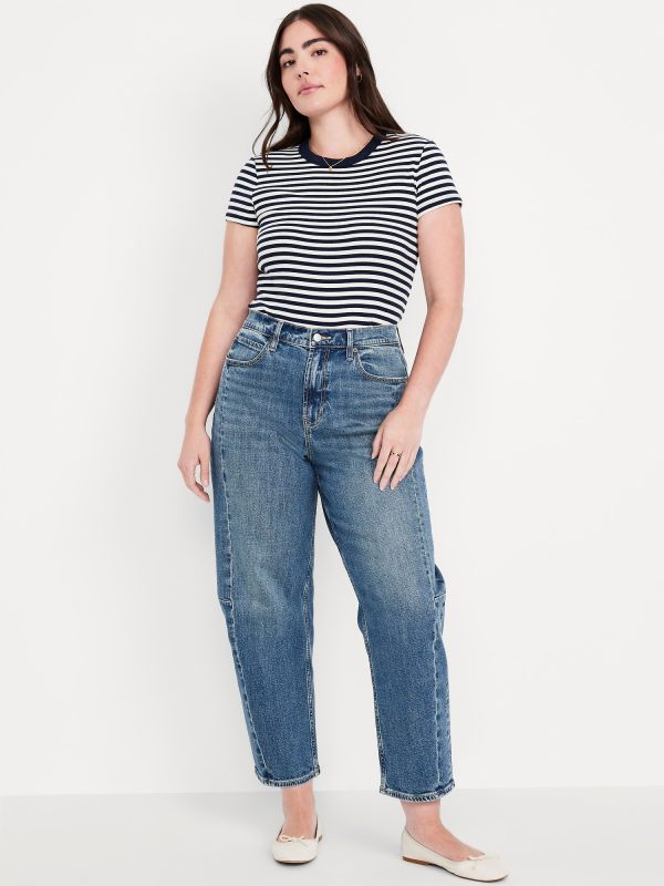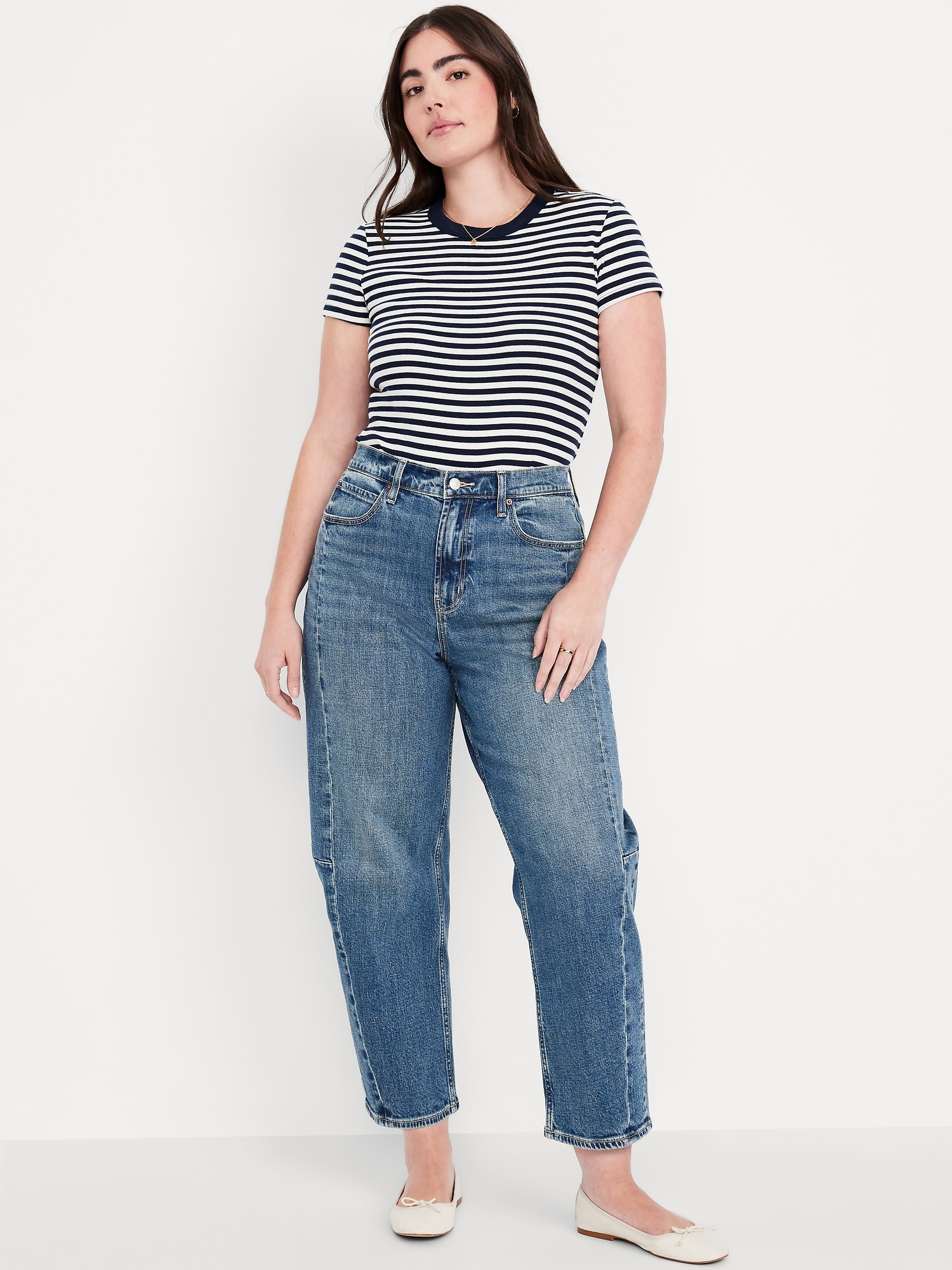 High-Waisted Barrel Ankle Jeans: A curved, tapered leg and proportion play from hip to hem.high waisted, zip fly, seamed barrel leg, #804566