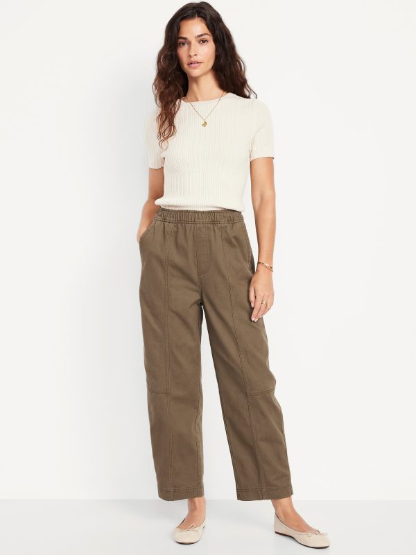 High-Waisted Barrel Ankle Pants: The effortless curved shape that’s so hot right now.comfort-elastic pull-on waistband, diagonal front pockets, back patch pockets, darted knee, seamed leg, #801608