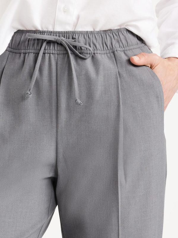 High-Waisted Billie Straight Ankle Trouser: A pleated pull-on pant for work and play.comfort elastic-drawstring waist, hip pockets, back right welt pocket, #799291