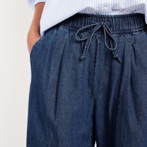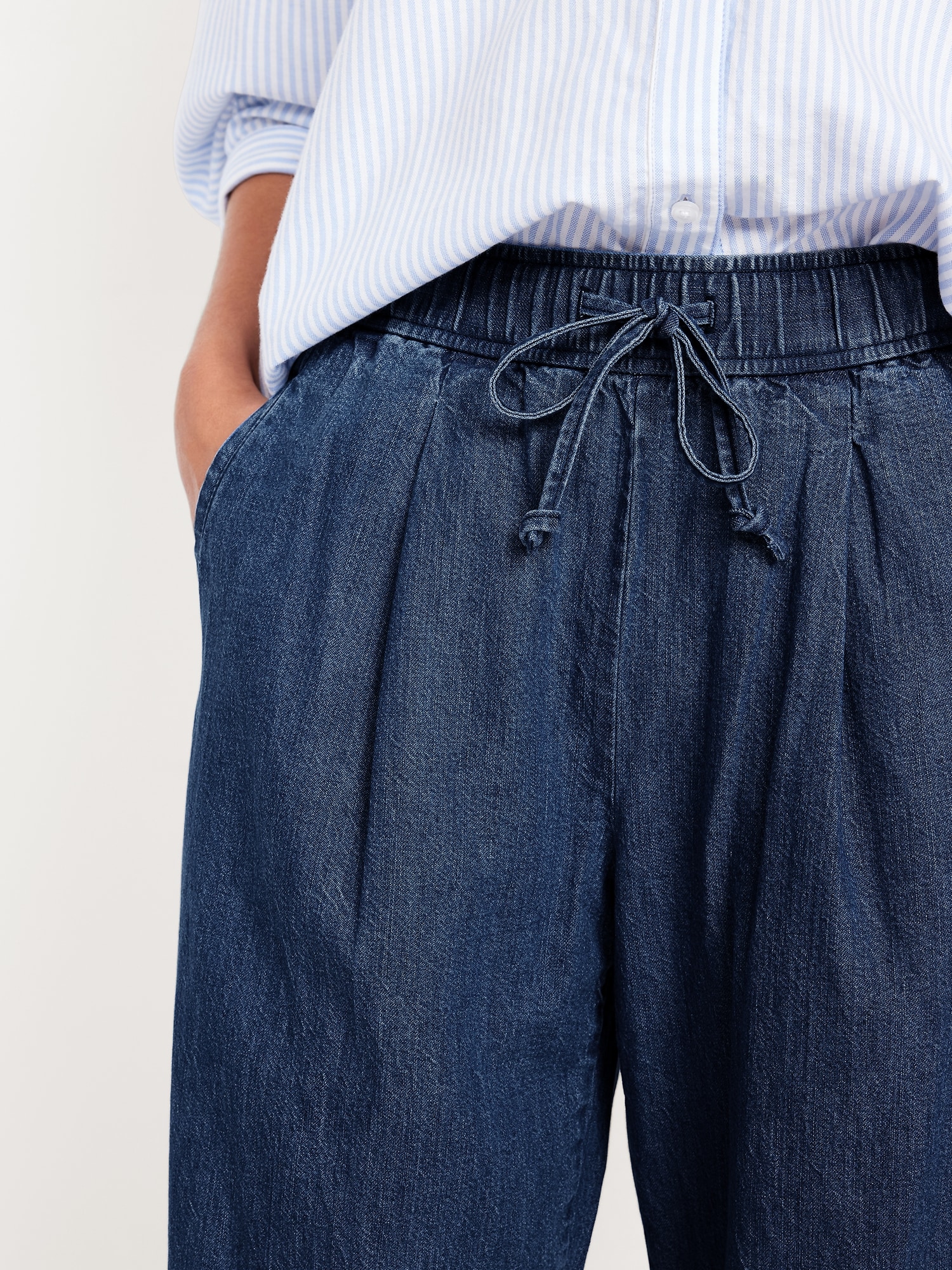 High-Waisted Billie Straight Ankle Trouser: A pleated pull-on pant for work and play.comfort elastic-drawstring waist, hip pockets, back right welt pocket, #799291