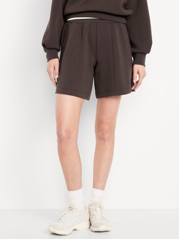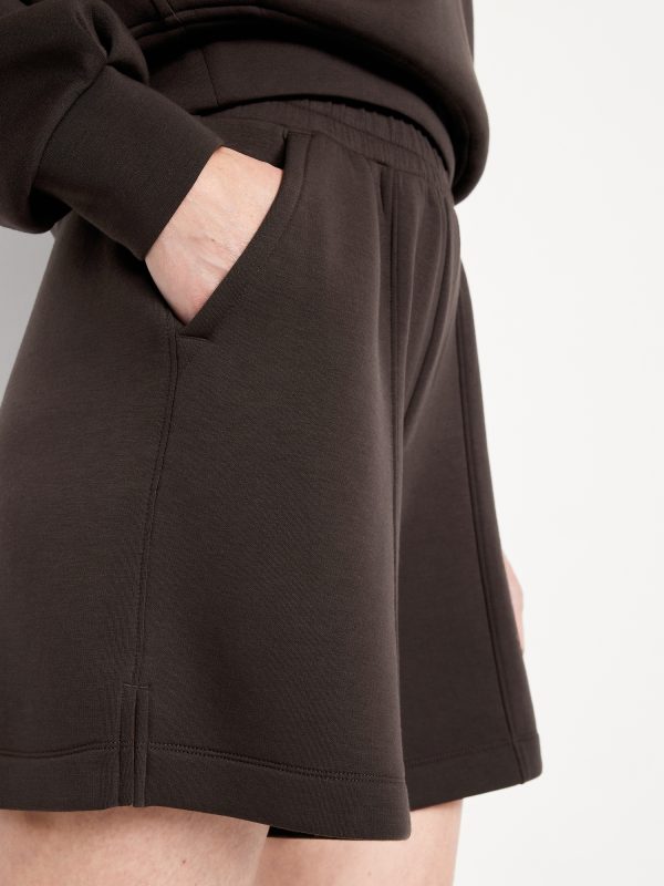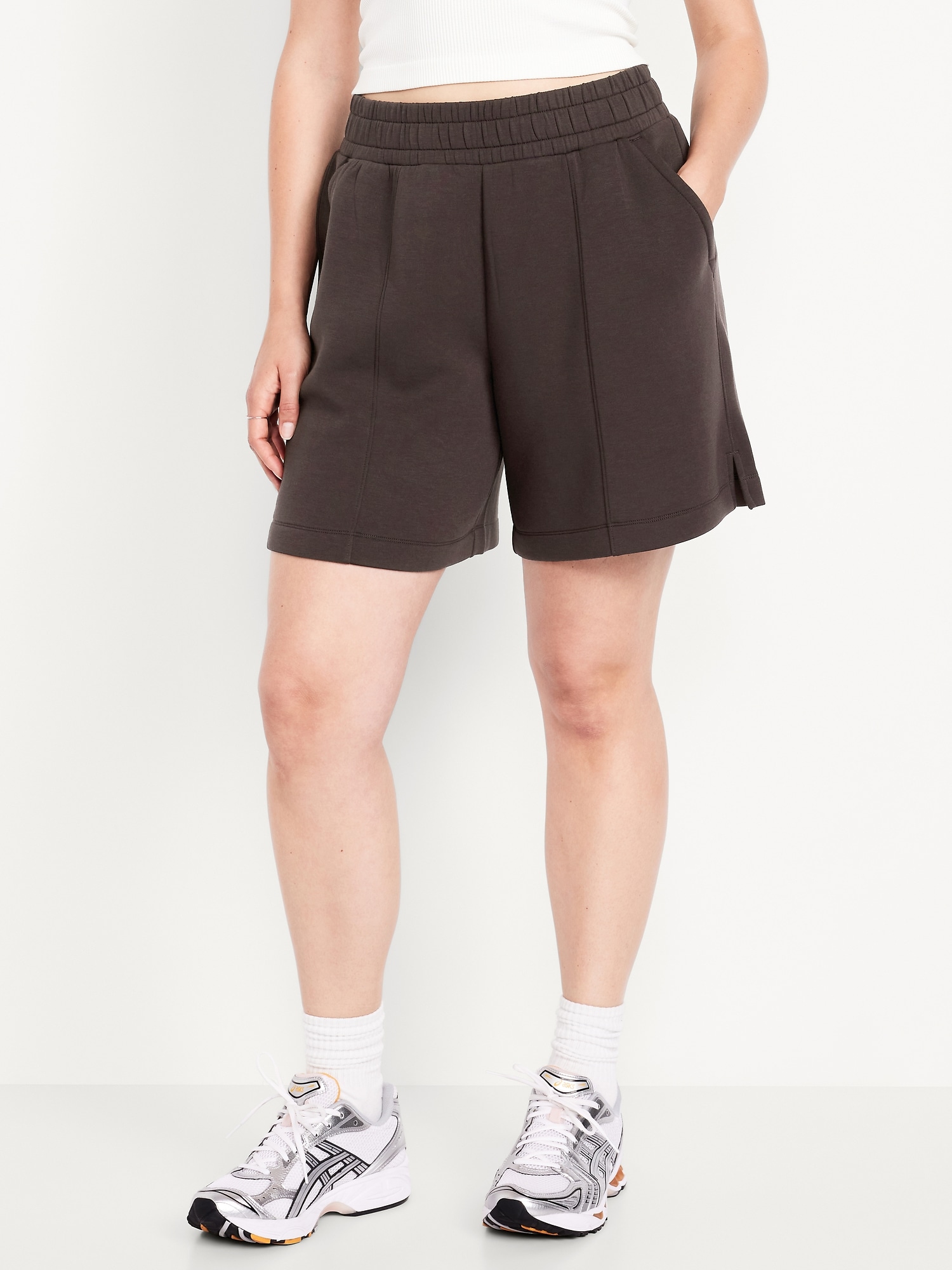High-Waisted Bounce Fleece Shorts — 8-inch inseam: Featuring Bounce Fleece. A smooth, cooling finish that feels good and looks chic everywhere you go.elastic waistband, breathable, pull-on style, #764339