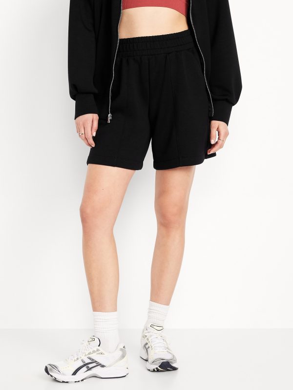 High-Waisted Bounce Fleece Shorts — 8-inch inseam: Featuring Bounce Fleece. A smooth, cooling finish that feels good and looks chic everywhere you go.elastic waistband, breathable, pull-on style, #764339