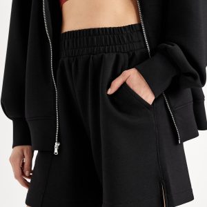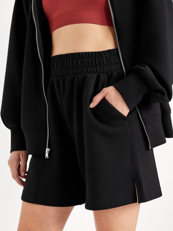 High-Waisted Bounce Fleece Shorts — 8-inch inseam: Featuring Bounce Fleece. A smooth, cooling finish that feels good and looks chic everywhere you go.elastic waistband, breathable, pull-on style, #764339