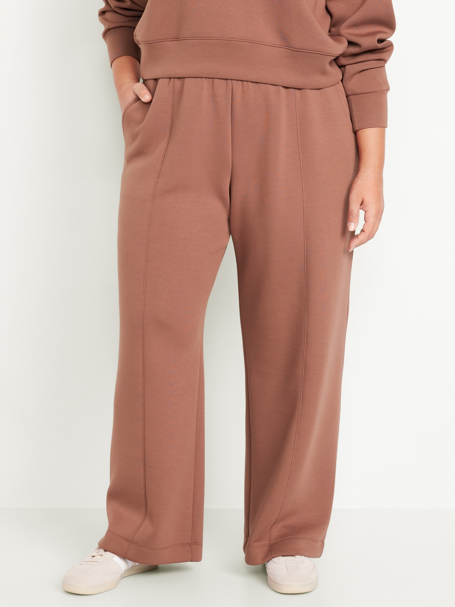 High-Waisted Bounce Fleece Wide-Leg Sweatpants: Featuring Bounce Fleece. A smooth, cooling finish that feels good and looks chic everywhere you go.elasticized waist, hip pockets, seamed front leg, pull-on style, breathable, #583458
