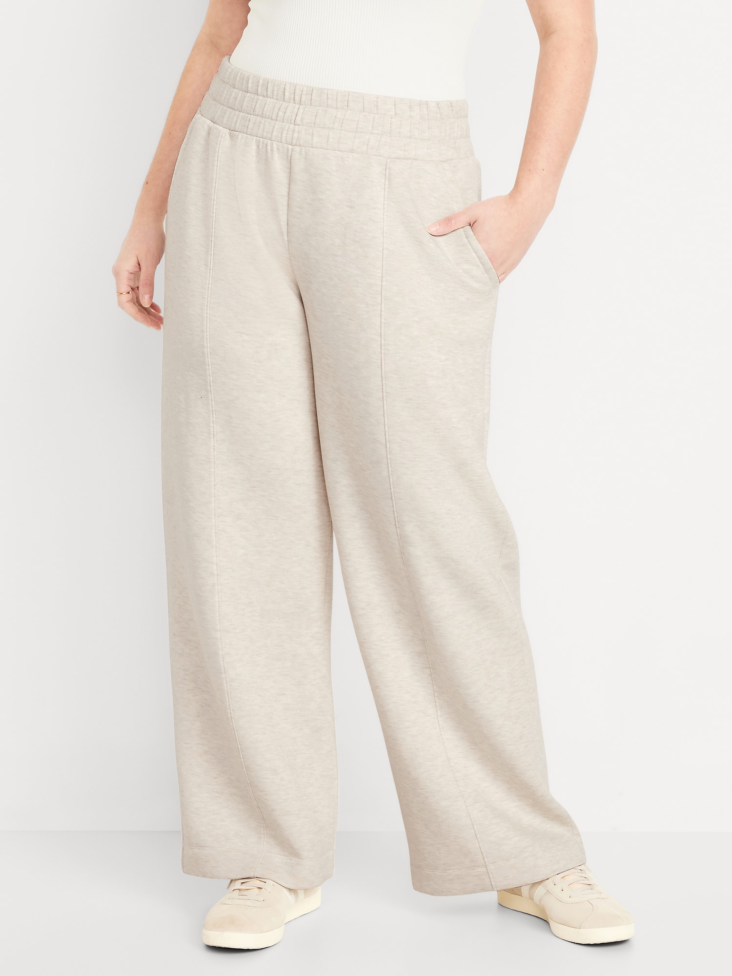 High-Waisted Bounce Fleece Wide-Leg Sweatpants: Featuring Bounce Fleece. A smooth, cooling finish that feels good and looks chic everywhere you go.elasticized waist, hip pockets, seamed front leg, pull-on style, breathable, #583458