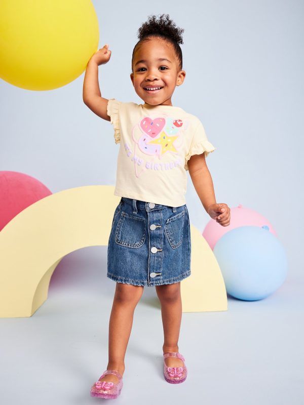 High-Waisted Button-Front Jean Skirt for Toddler Girls