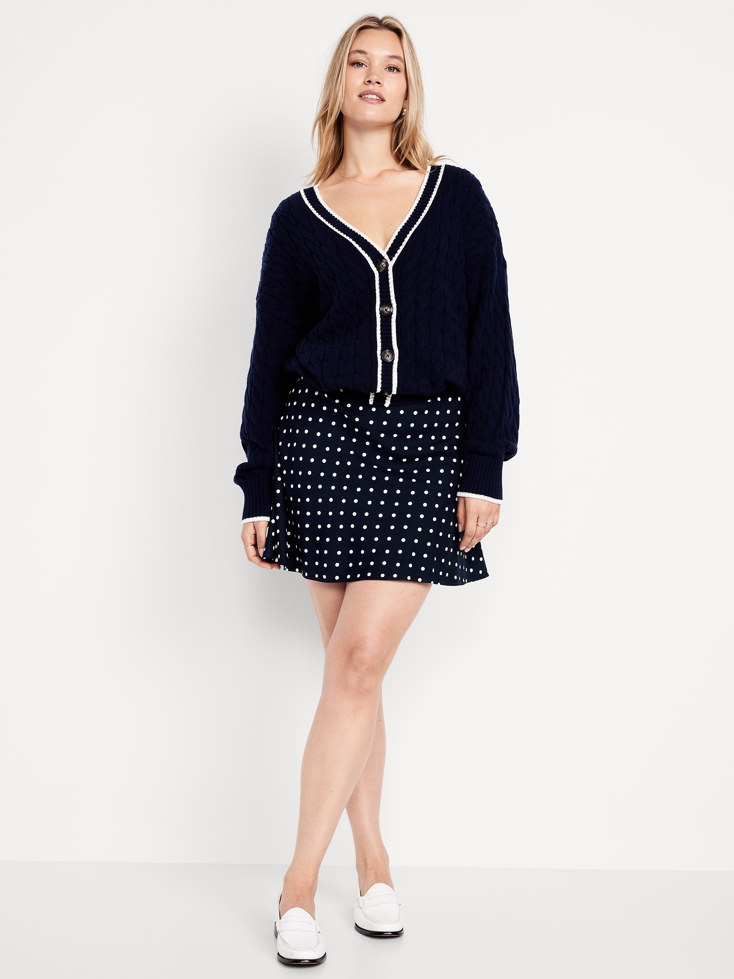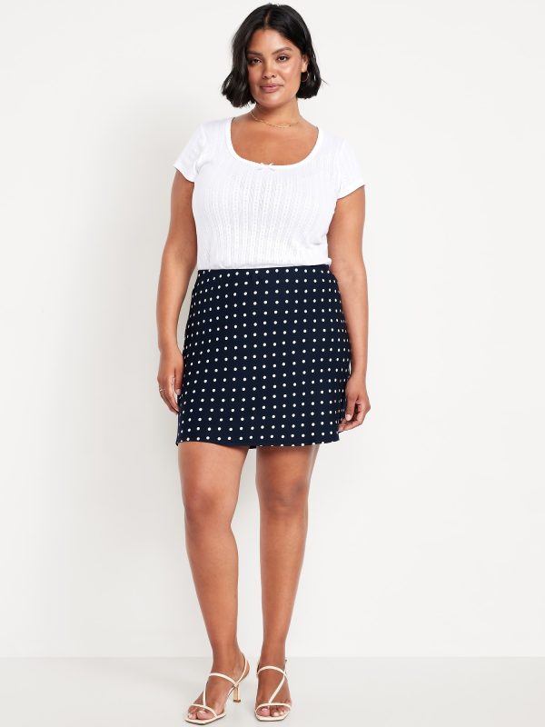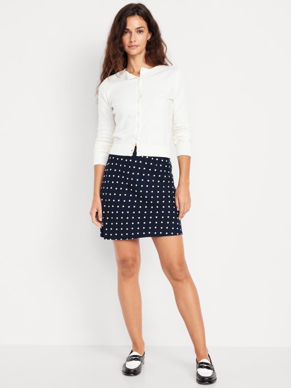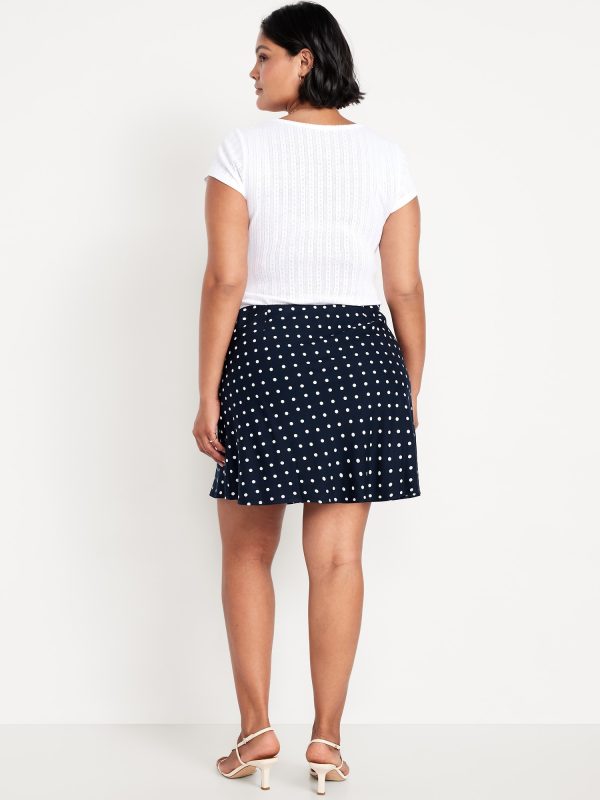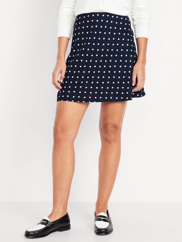 High-Waisted Crepe Mini Skirt: pull-on elastic waistband, darted back, #804480