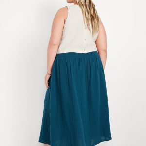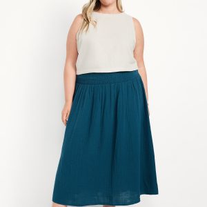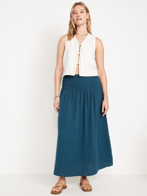 High-Waisted Crinkle Gauze Smocked Maxi Skirt: smocked high waistband, shirred detail, easy pull-on style, #766931