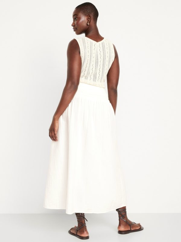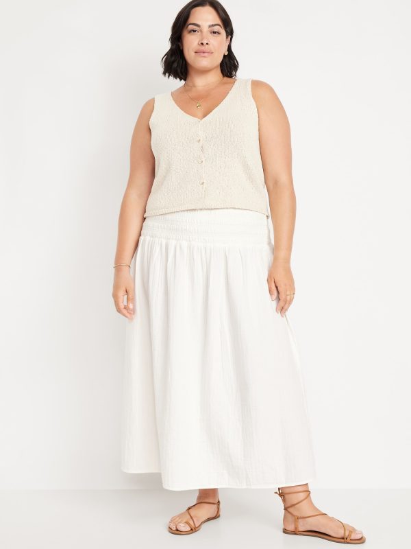 High-Waisted Crinkle Gauze Smocked Maxi Skirt: smocked high waistband, shirred detail, easy pull-on style, #766931