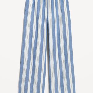 High-Waisted Crinkle Gauze Super Wide-Leg Pants: A light, rippled fabric that’s begging to be beachside.comfort-elastic high pull-on waistband, on-seam pockets, super wide leg, striped print, #683359