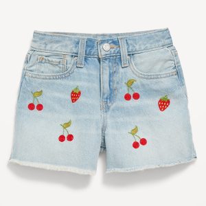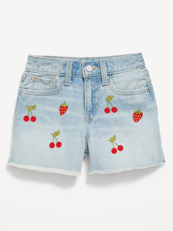 High-Waisted Embroidered Frayed-Hem Jean Shorts for Girls