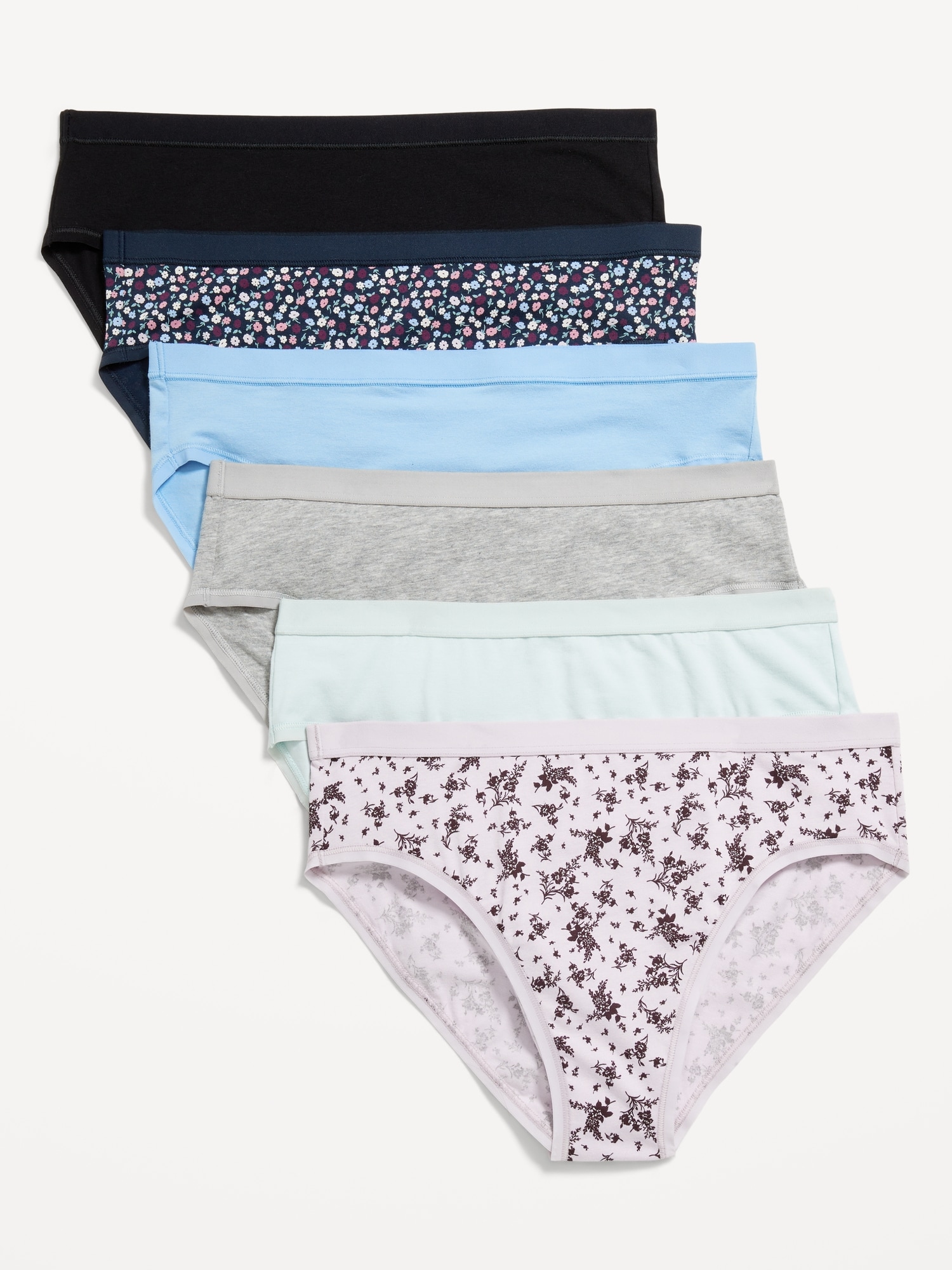 High-Waisted Everyday Cotton Underwear 6-Pack: brushed-elastic waistband, elasticized leg openings, #684573