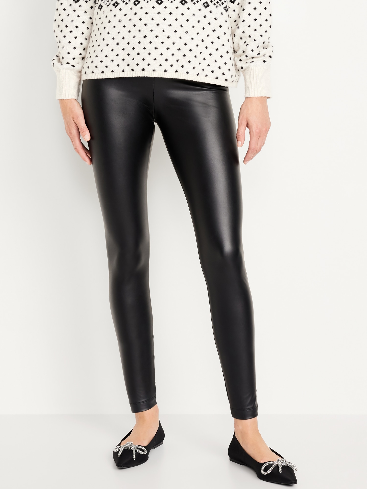 High-Waisted Faux-Leather Fashion Layering Leggings: Your go-to legging for extreme lounging (and layering).more for downtime than gym time, pull-on style, #565291
