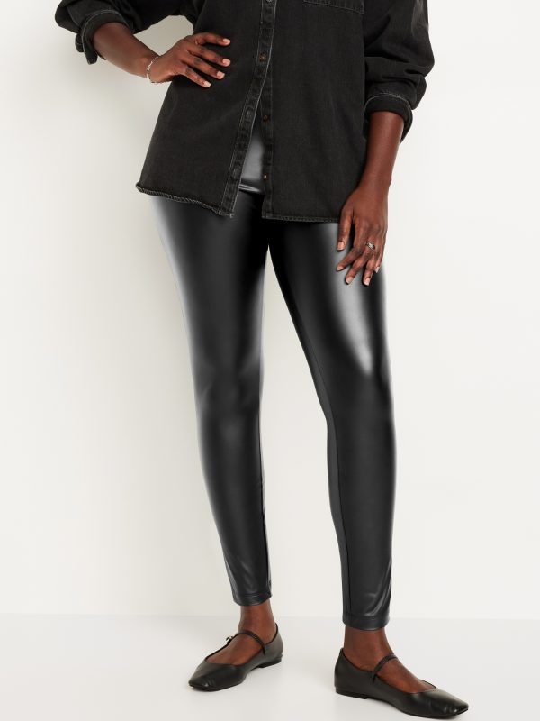 High-Waisted Faux-Leather Fashion Layering Leggings