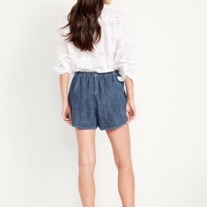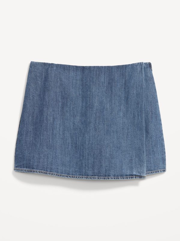 High-Waisted Faux-Wrap Jean Mini Skort