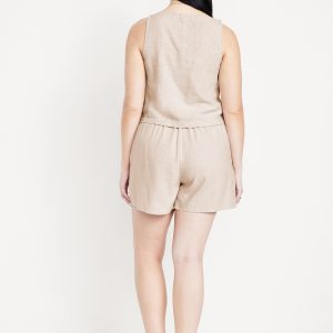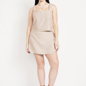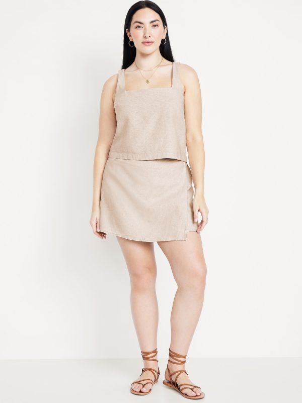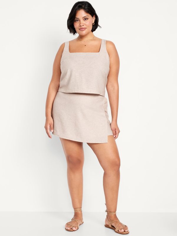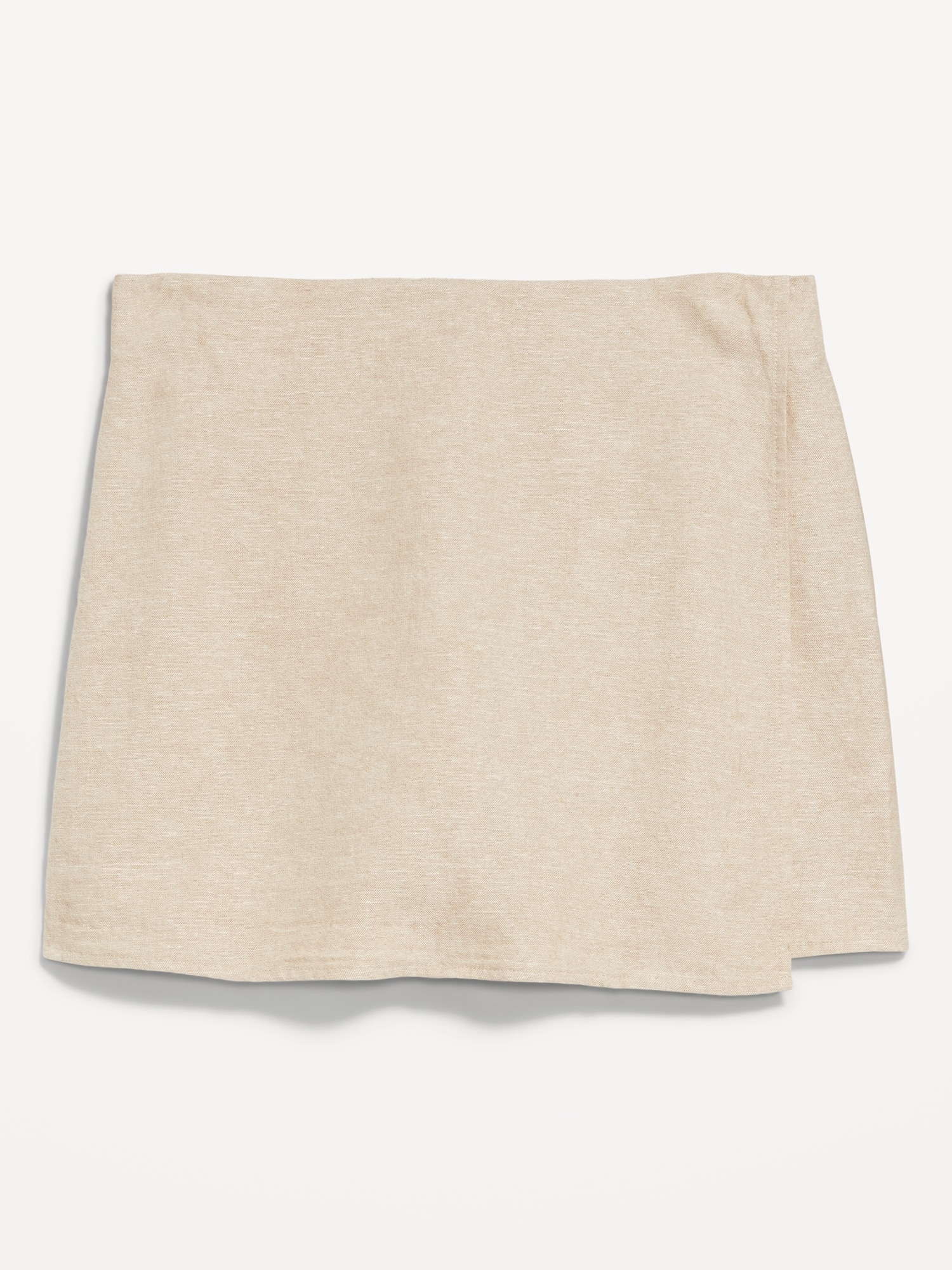 High-Waisted Faux-Wrap Linen-Blend Mini Skort: faux-wrap front, elastic back waist, built-in shorts, #766917