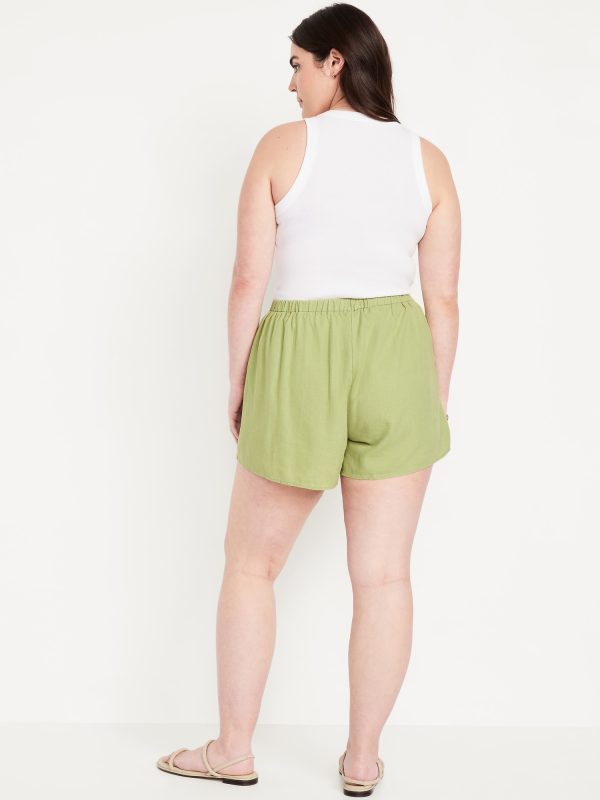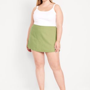 High-Waisted Faux-Wrap Linen-Blend Mini Skort: faux-wrap front, elastic back waist, built-in shorts, #766917