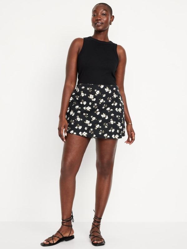 High-Waisted Linen-Blend Mini Skort: faux-wrap front, elastic back waist, built-in shorts, #766917