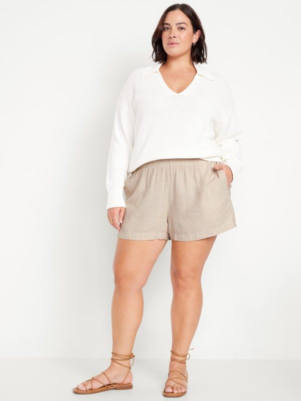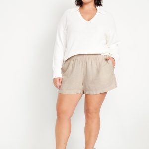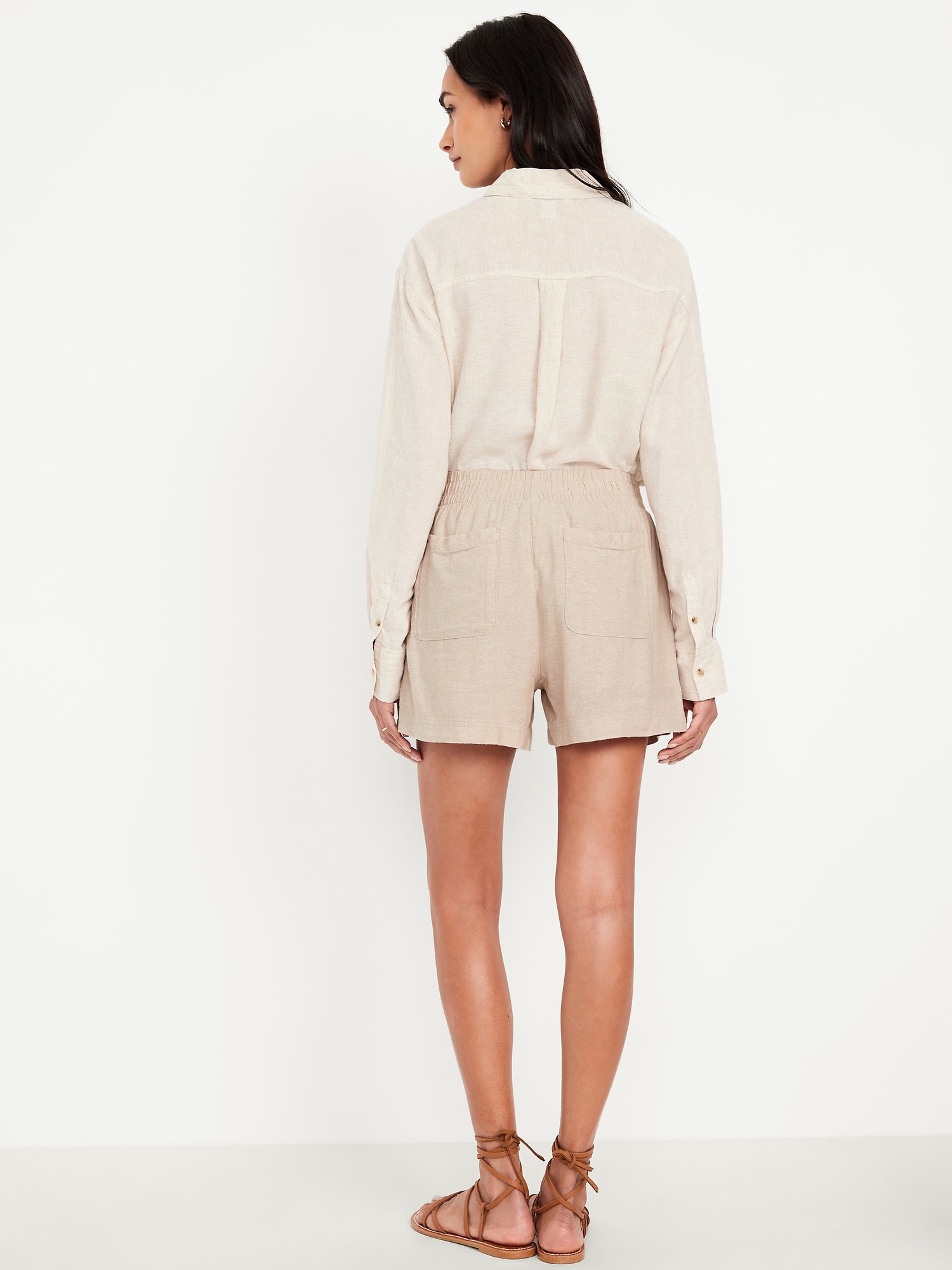 High-Waisted Linen-Blend Pull-On Shorts — 3.5-inch inseam