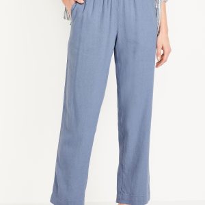 High-Waisted Linen-Blend Straight Ankle Pants: elasticized waistband, on-seam hip pockets, back patch pockets, straight leg, pull-on style, #683297