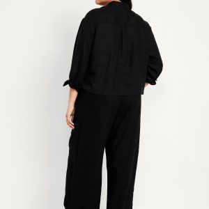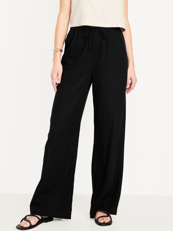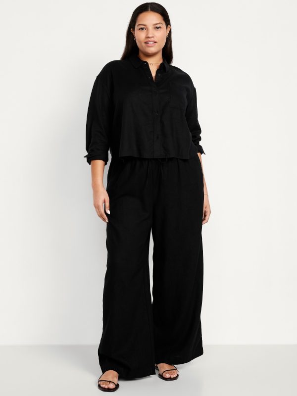 High-Waisted Linen-Blend Super Wide-Leg Pants