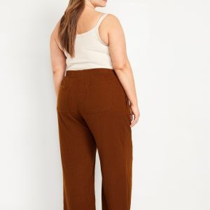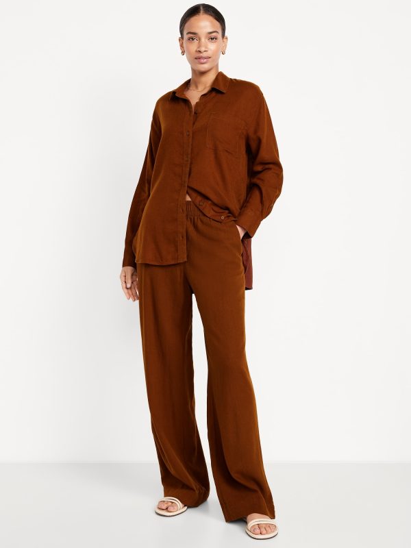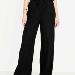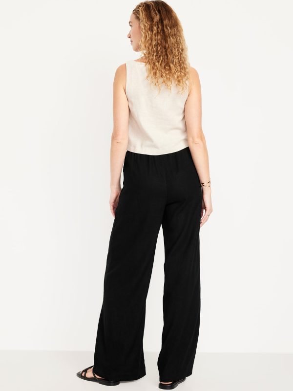 High-Waisted Linen-Blend Wide-Leg Pants: elastic-drawstring high waistband, on-seam hip pockets, super wide leg, easy pull-on style, online exclusive, #683345