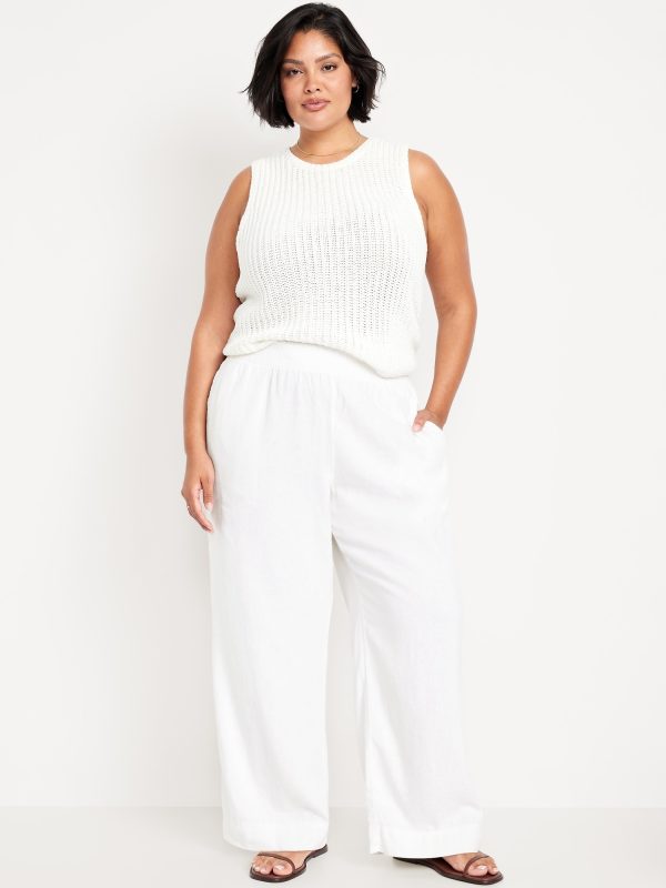 High-Waisted Linen-Blend Wide-Leg Pants: elastic-drawstring high waistband, on-seam hip pockets, super wide leg, easy pull-on style, online exclusive, #683345