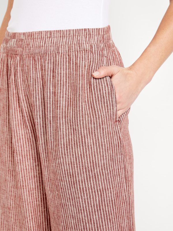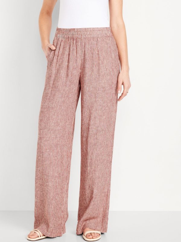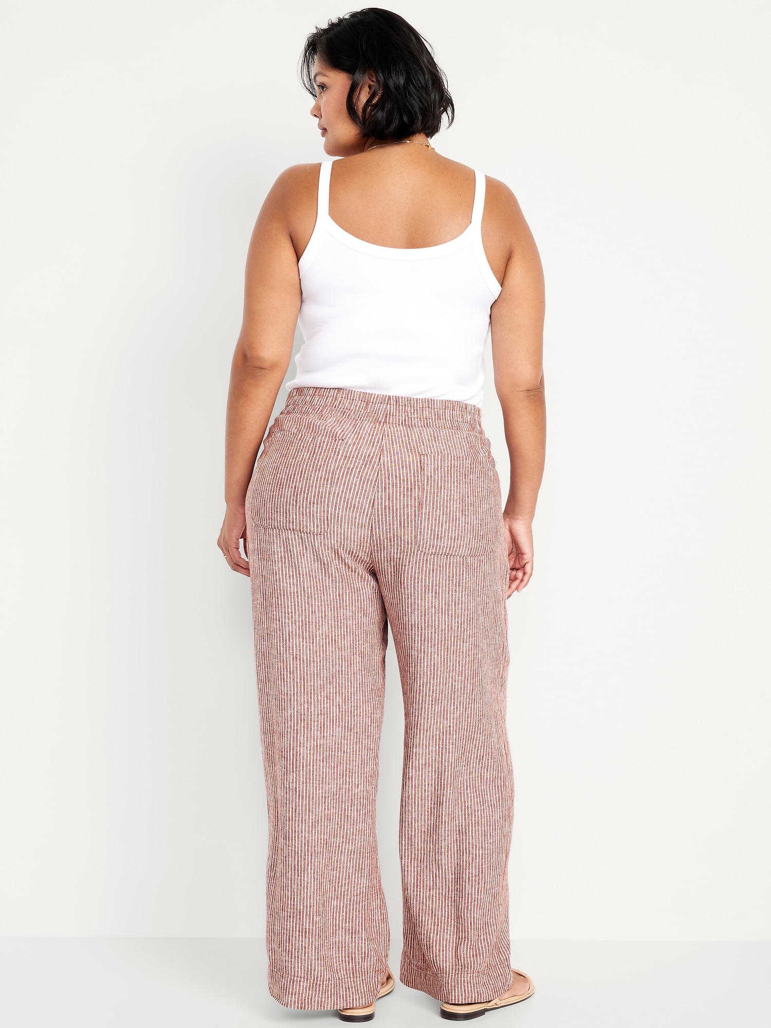 High-Waisted Linen-Blend Wide-Leg Pants: comfort elastic-drawstring waist, side-seam pockets, wide leg, vertical striped print, pull-on style, #766295