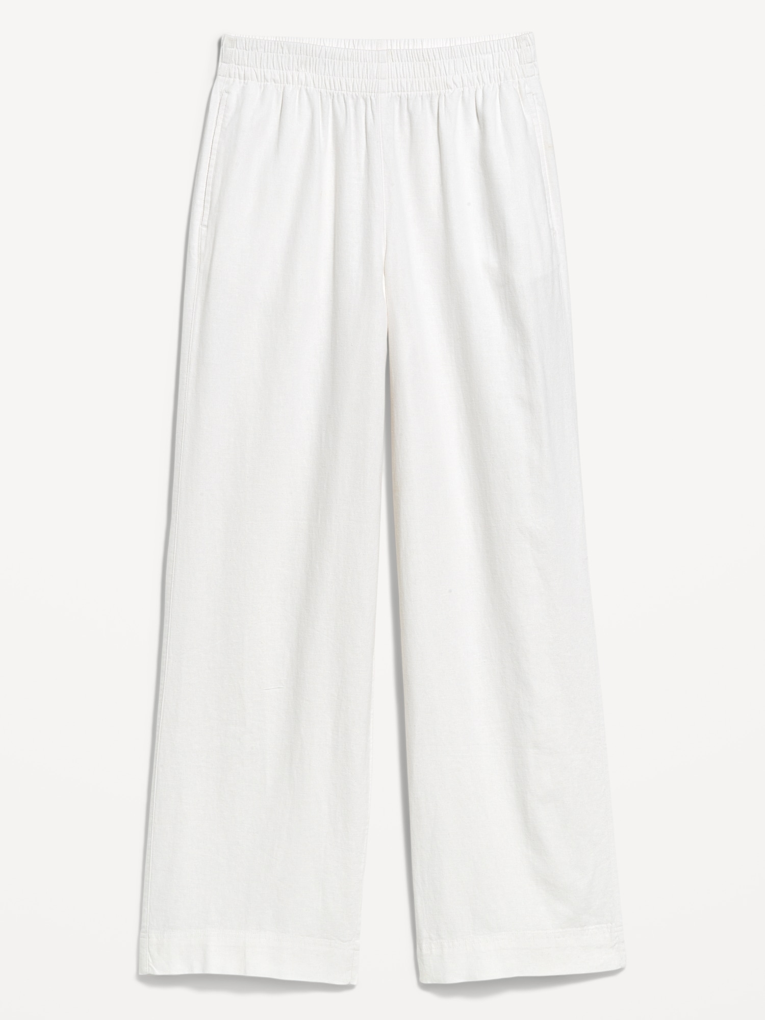 High-Waisted Linen-Blend Wide-Leg Pants: elastic-drawstring high waistband, on-seam hip pockets, super wide leg, easy pull-on style, online exclusive, #683345