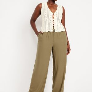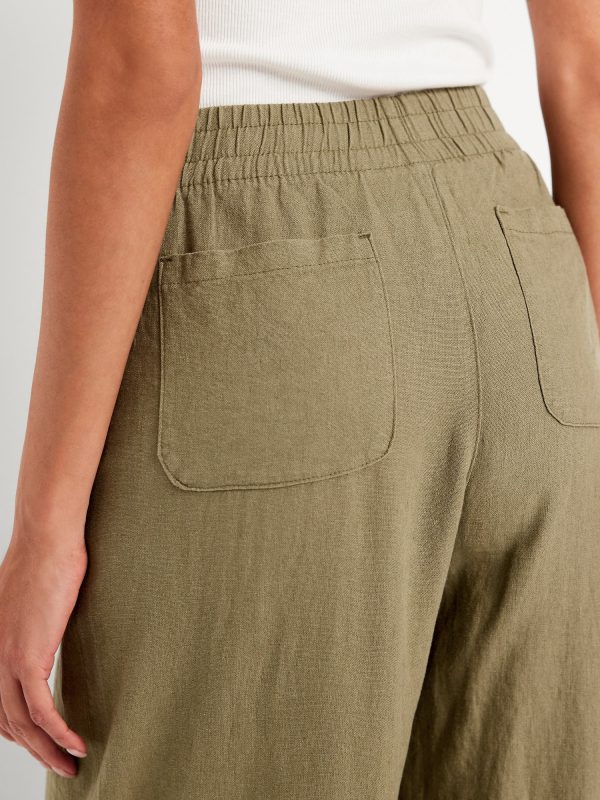 High-Waisted Linen-Blend Wide-Leg Pants: elastic-drawstring high waistband, on-seam hip pockets, super wide leg, easy pull-on style, online exclusive, #683345