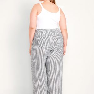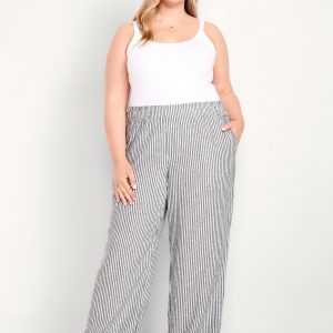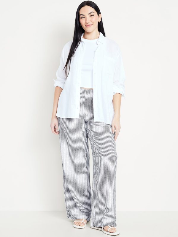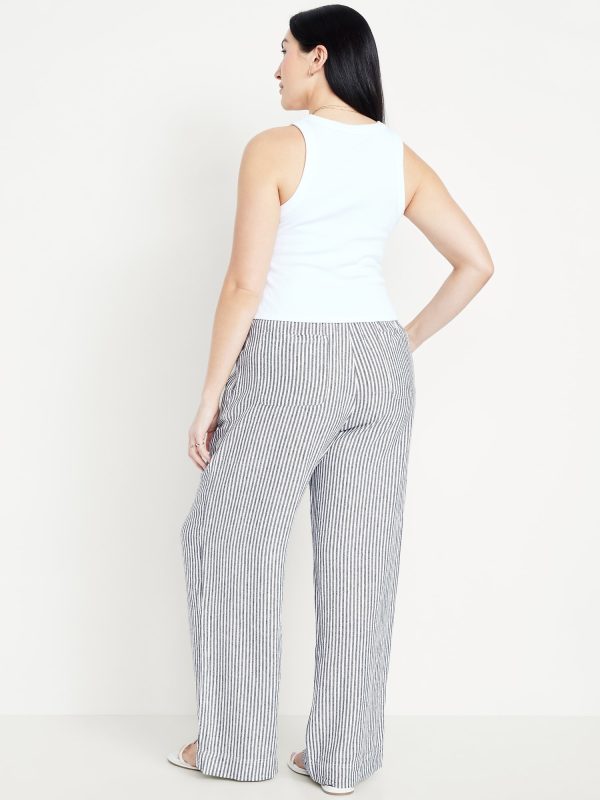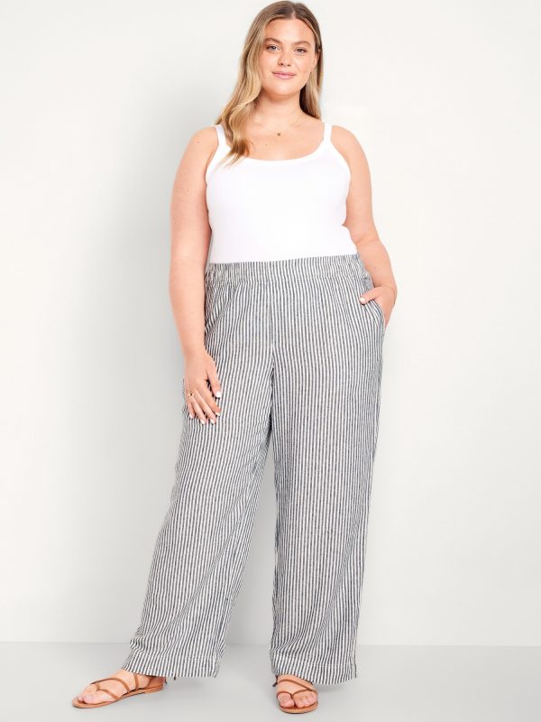 High-Waisted Linen-Blend Super Wide-Leg Pants: elastic-drawstring high waistband, on-seam hip pockets, super wide leg, easy pull-on style, online exclusive, #683345