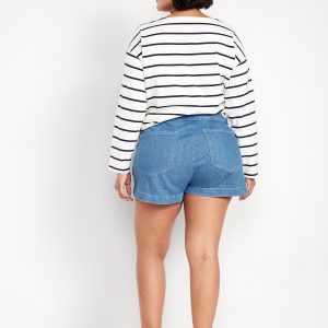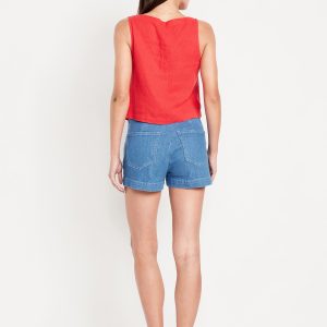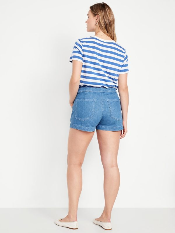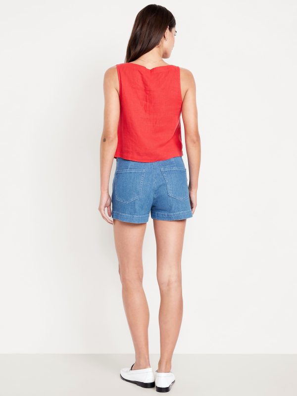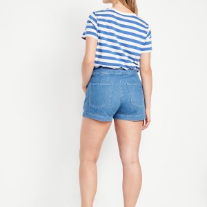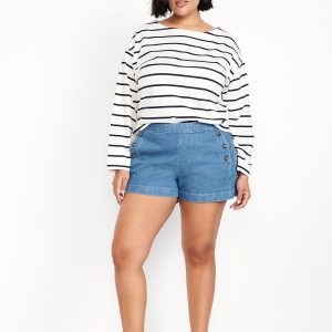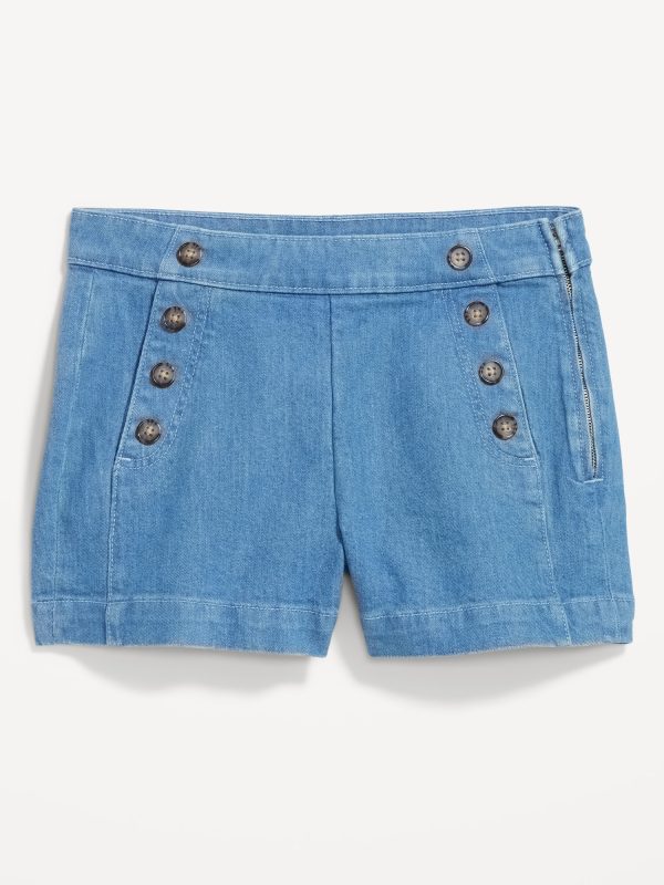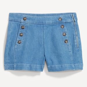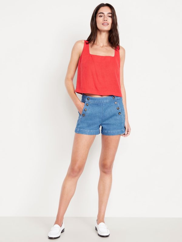 High-Waisted Mariner Shorts — 3-inch inseam: button accents at each hip, left side zipper, back patch pockets, darted back, online exclusive, #695098