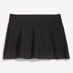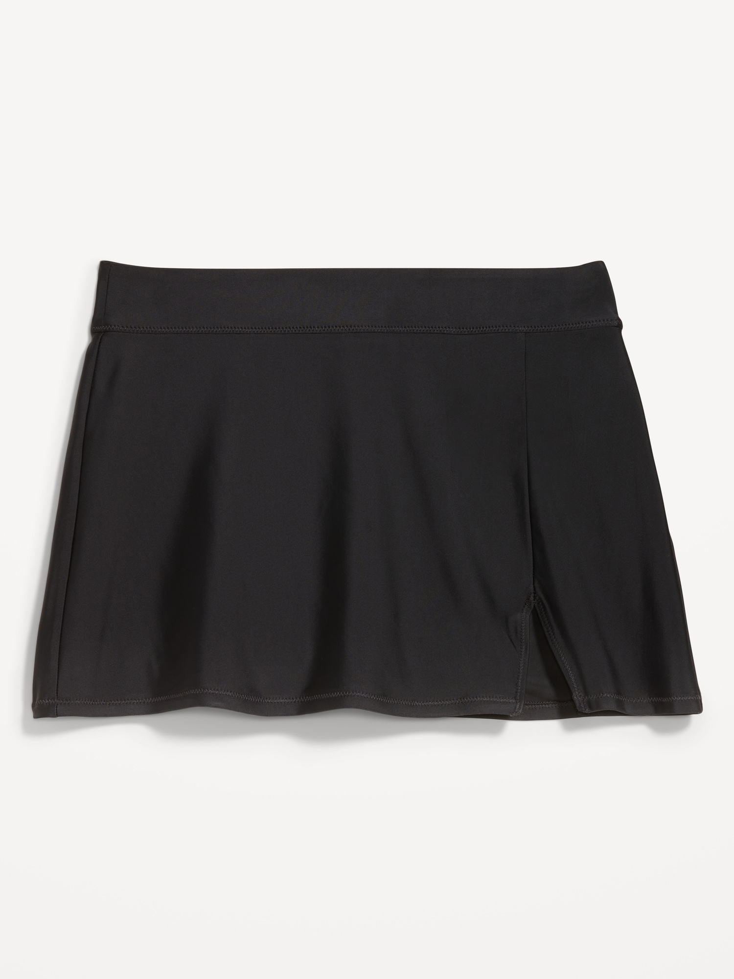 High-Waisted Matte Swim Skirt: elastic waist, vented front, built-in briefs, #864938
