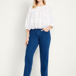 High-Waisted OG Loose Jeans: A loose take on our bestselling OG Straight.high waisted, zip fly, front scoop pockets, back patch pockets, ripped detail, #876627