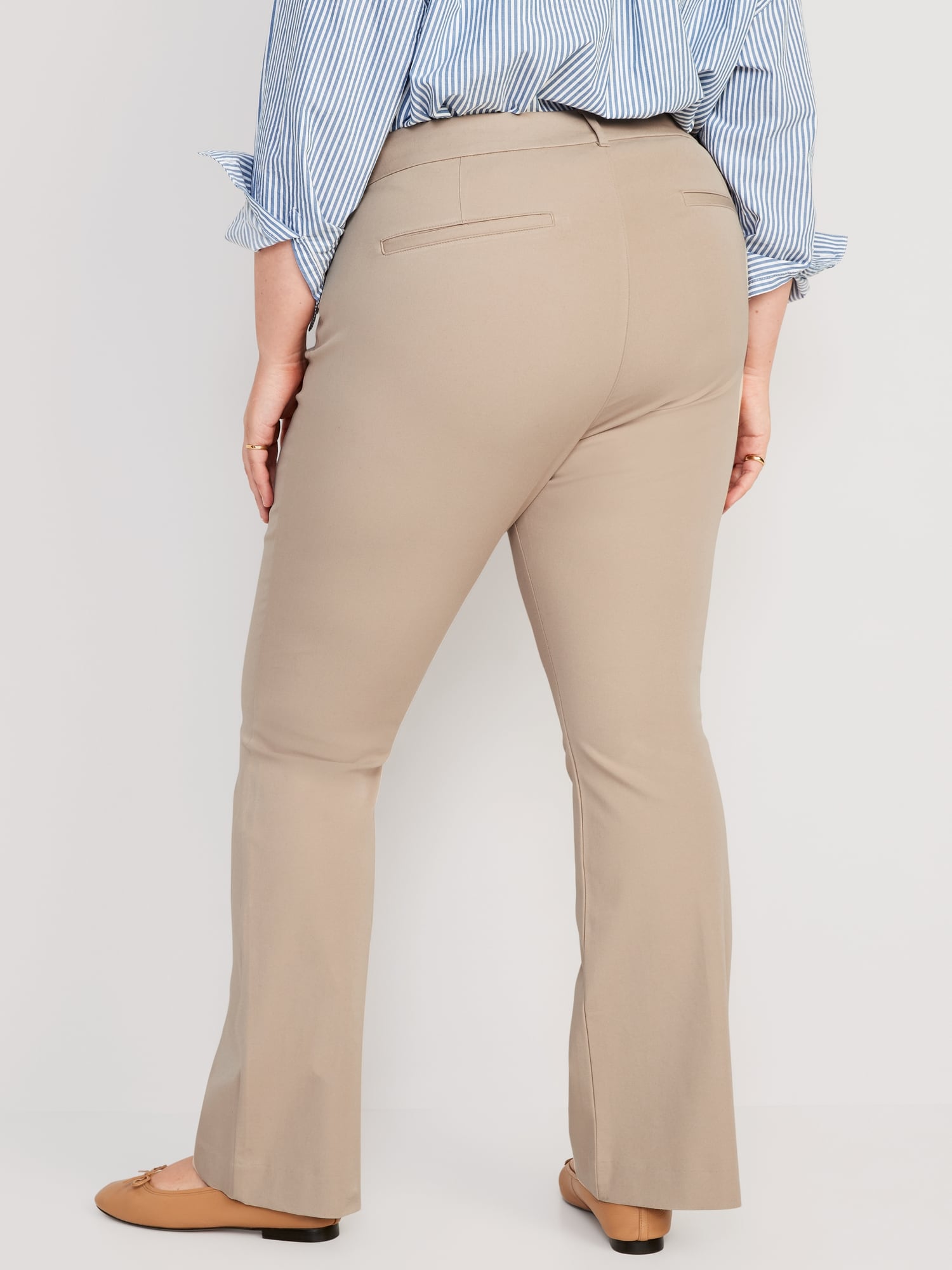 High-Waisted Pixie Flare Pants: The stretchy profesh pant you love, with just enough flare.belt loops, hook-and-bar closure, interior button, zip fly, front pockets, faux-welt back pockets, online exclusive, available in maternity sizes, #611133