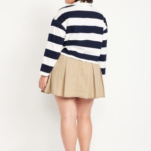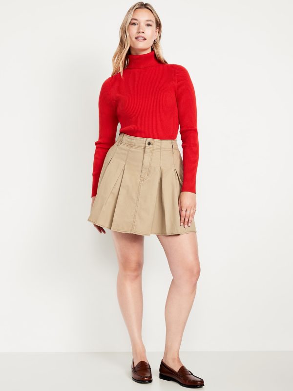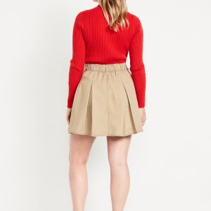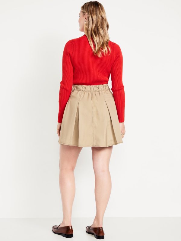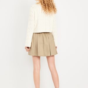 High-Waisted Pleated Mini Skirt: elasticized back waist, side-seam pockets, button front, zip fly, pleated skirt, #808760