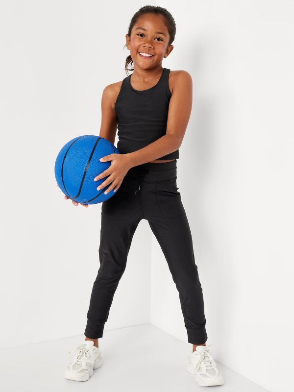 High-Waisted PowerSoft 7/8-Length Performance Leggings for Girls: elasticized waistband, high-rise, functional drawstring, diagonal pockets at front, banded leg cuffs, #762181