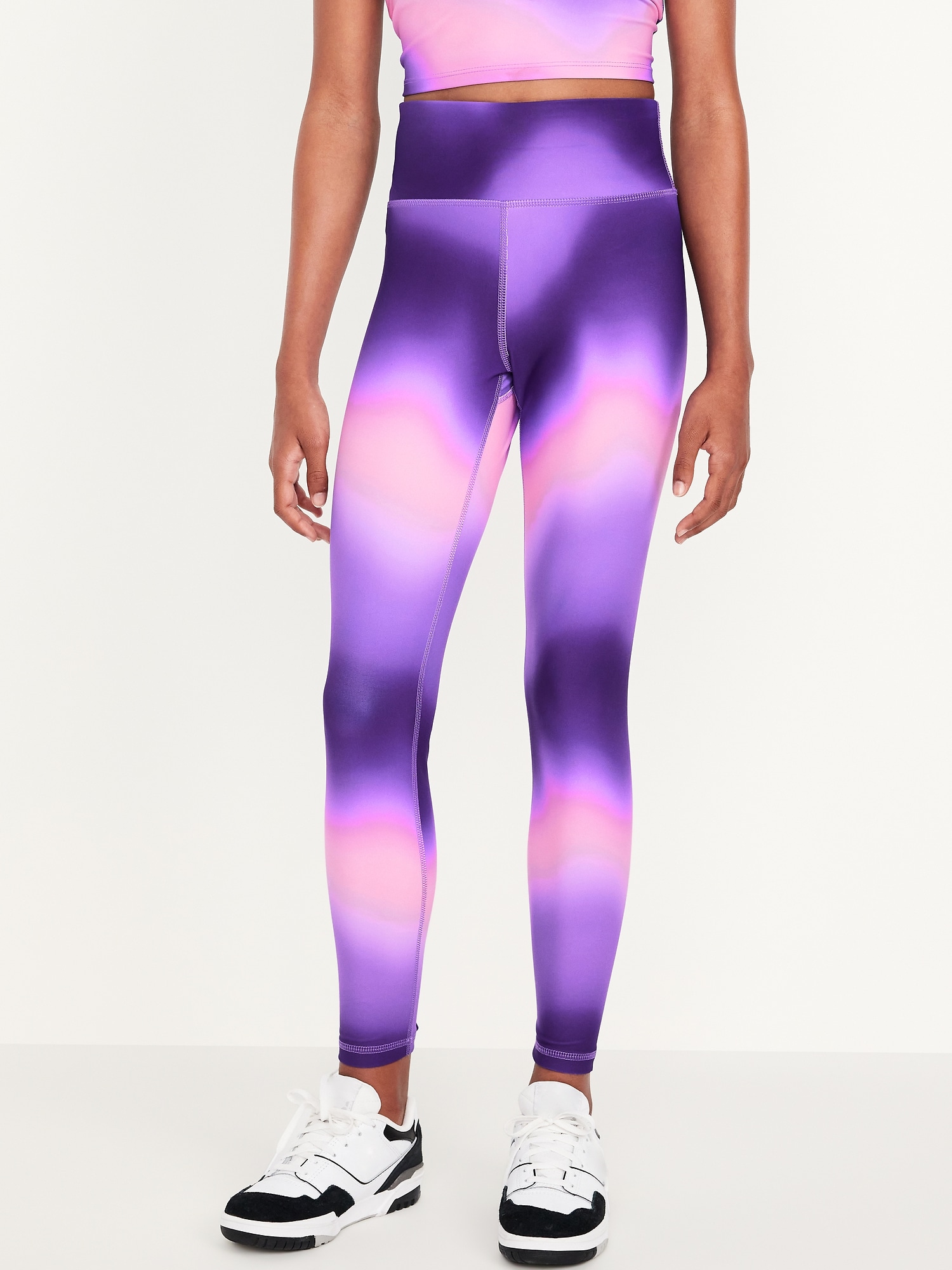 High-Waisted PowerSoft 7/8-Length Performance Leggings for Girls: elasticized waistband, high-rise, light-reflecting logo at back, ombre, #583781