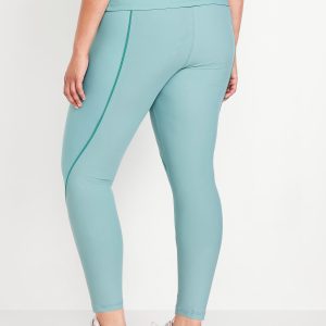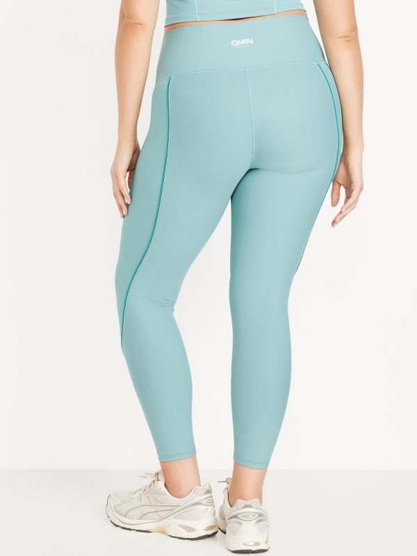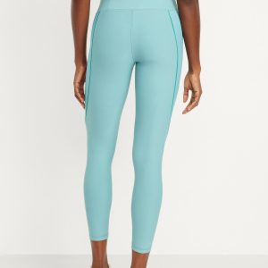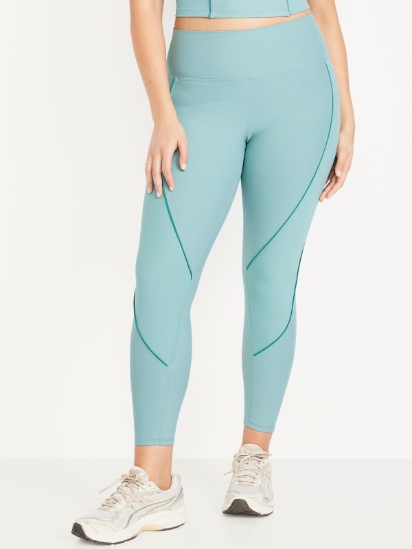 High-Waisted PowerSoft Rib Mix 7/8 Leggings: Featuring PowerSoft. Light compression meets a peachy-smooth, sweat-wicking fabric.ribbed side panels, contrasting piping, go-dry wicks moisture, #749127