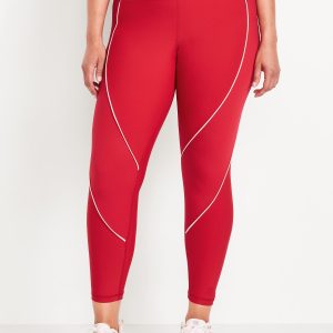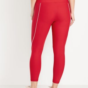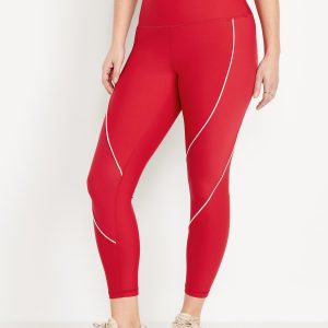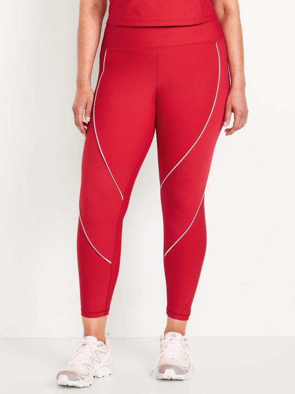 High-Waisted PowerSoft Rib Mix 7/8 Leggings: Featuring PowerSoft. Light compression meets a peachy-smooth, sweat-wicking fabric.ribbed side panels, contrasting piping, go-dry wicks moisture, #749127
