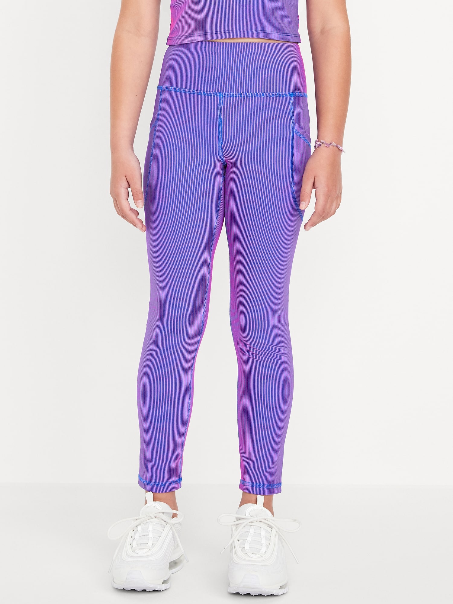 High-Waisted PowerSoft Ribbed Performance 7/8 Leggings for Girls: elasticized waistband, light-reflecting logo at center back, on-seam side pockets, #414314