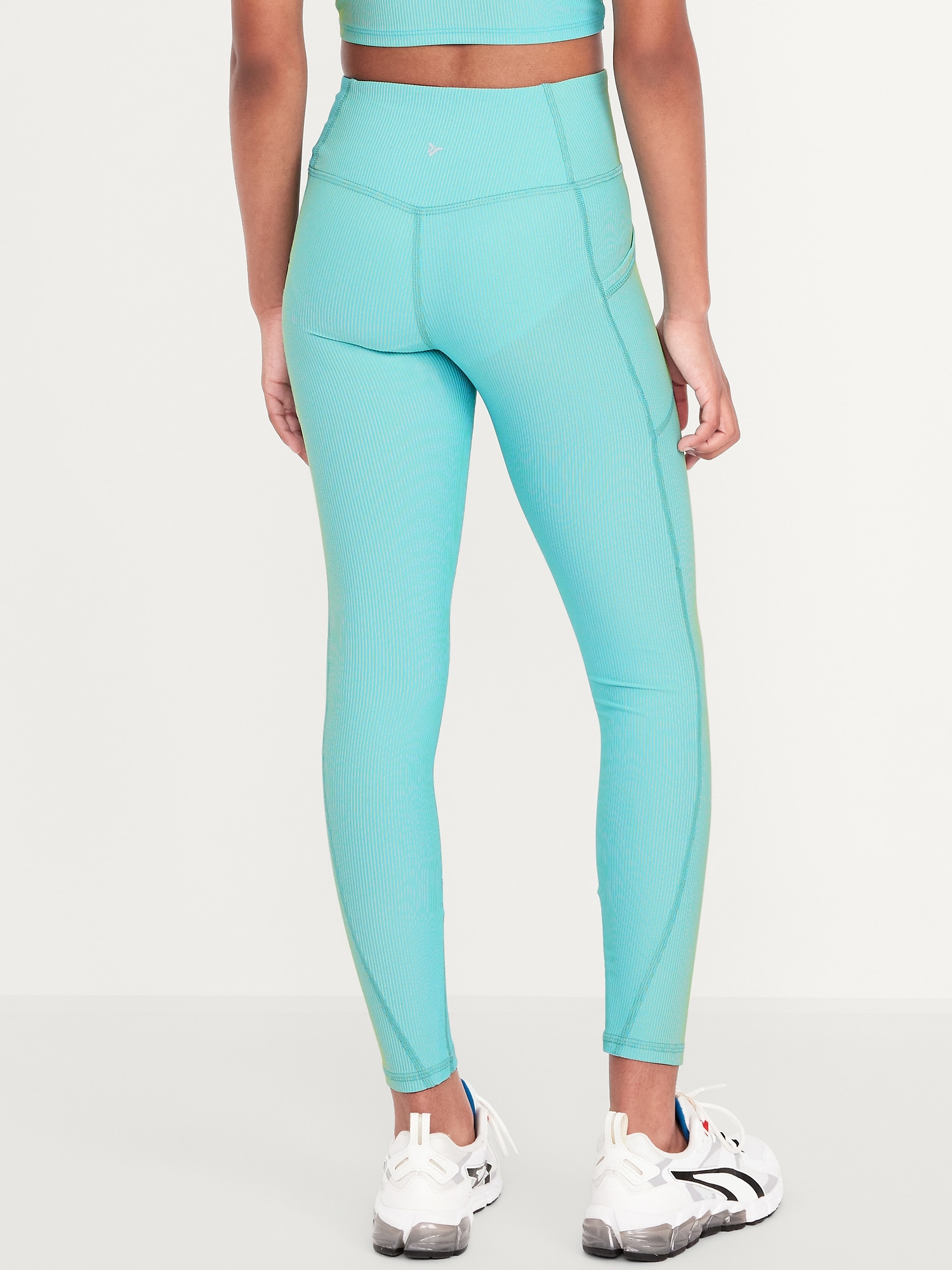 High-Waisted PowerSoft Ribbed Performance 7/8 Leggings for Girls: elasticized waistband, high-rise, light-reflecting logo at back, side pockets, #762169