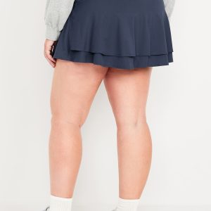 High-Waisted PowerSoft Skort: Featuring PowerSoft. Light compression meets a peachy-smooth, sweat-wicking fabric.elasticized waist, pocket fits your phone, built-in biker shorts, tiered ruffles at back, go-dry wicks moisture, #400173