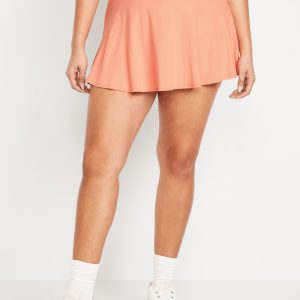 High-Waisted PowerSoft Skort: Featuring PowerSoft. Light compression meets a peachy-smooth, sweat-wicking fabric.elasticized waist, pocket fits your phone, built-in biker shorts, tiered ruffles at back, go-dry wicks moisture, #400173