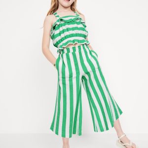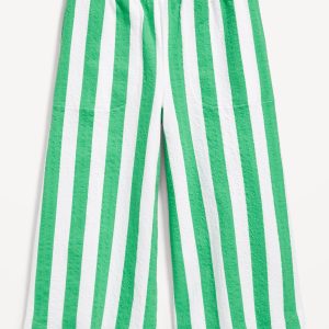 High-Waisted Pucker Wide-Leg Pants for Girls: ruffle elastic waistband, on-seam pockets, curved leg, wide contrasting stripes, #767120