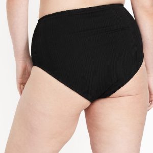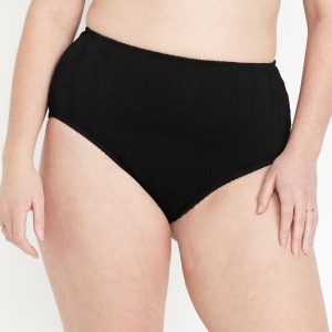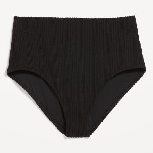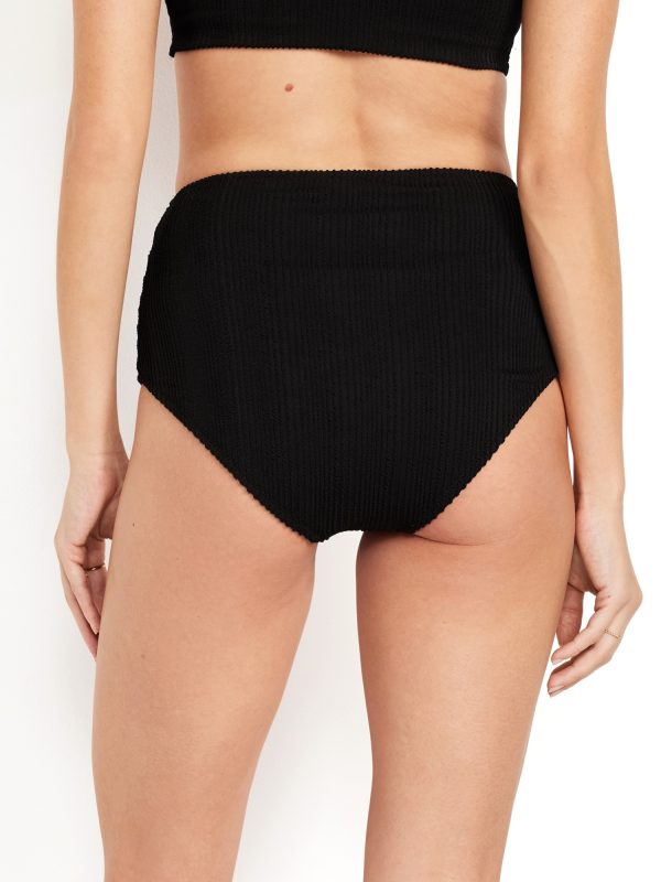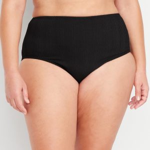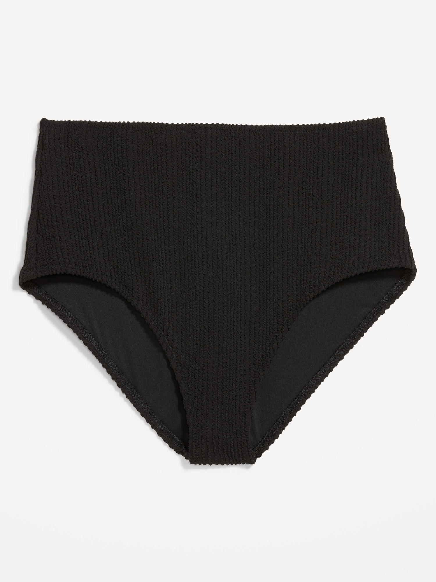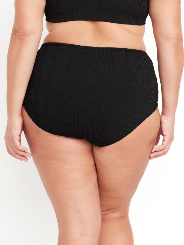 High-Waisted Ribbed Bikini Swim Bottoms: elasticized waist, elasticized leg openings, prints vary, #660456
