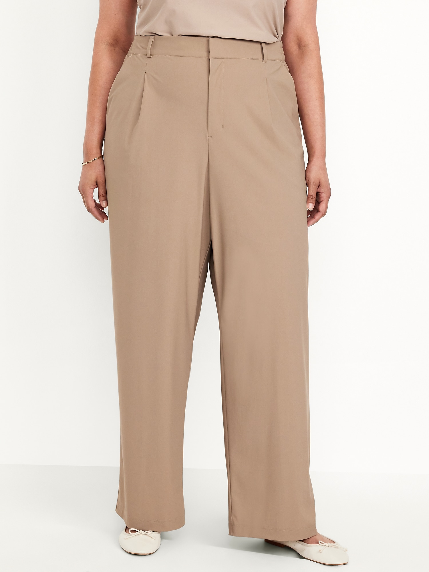 High-Waisted SleekTech Trouser Pants: Featuring SleekTech. Polished and lightweight, with serious stretch.high waist with belt loops, elastic back waist, functional zip fly, diagonal hip pockets, faux-welt back pocket, go-dry wicks moisture, #784434