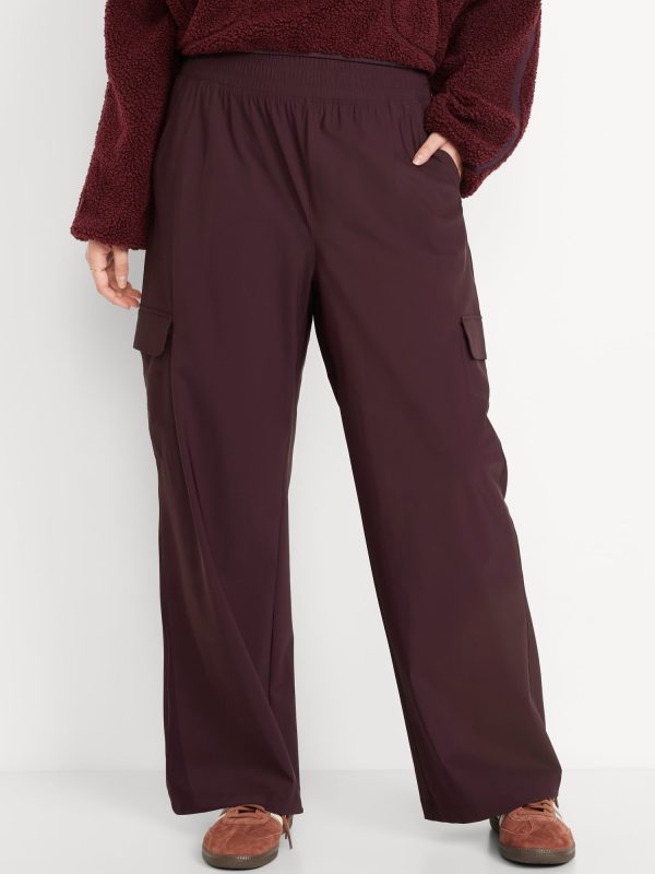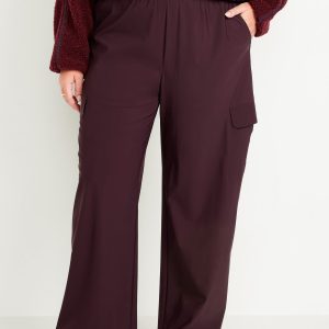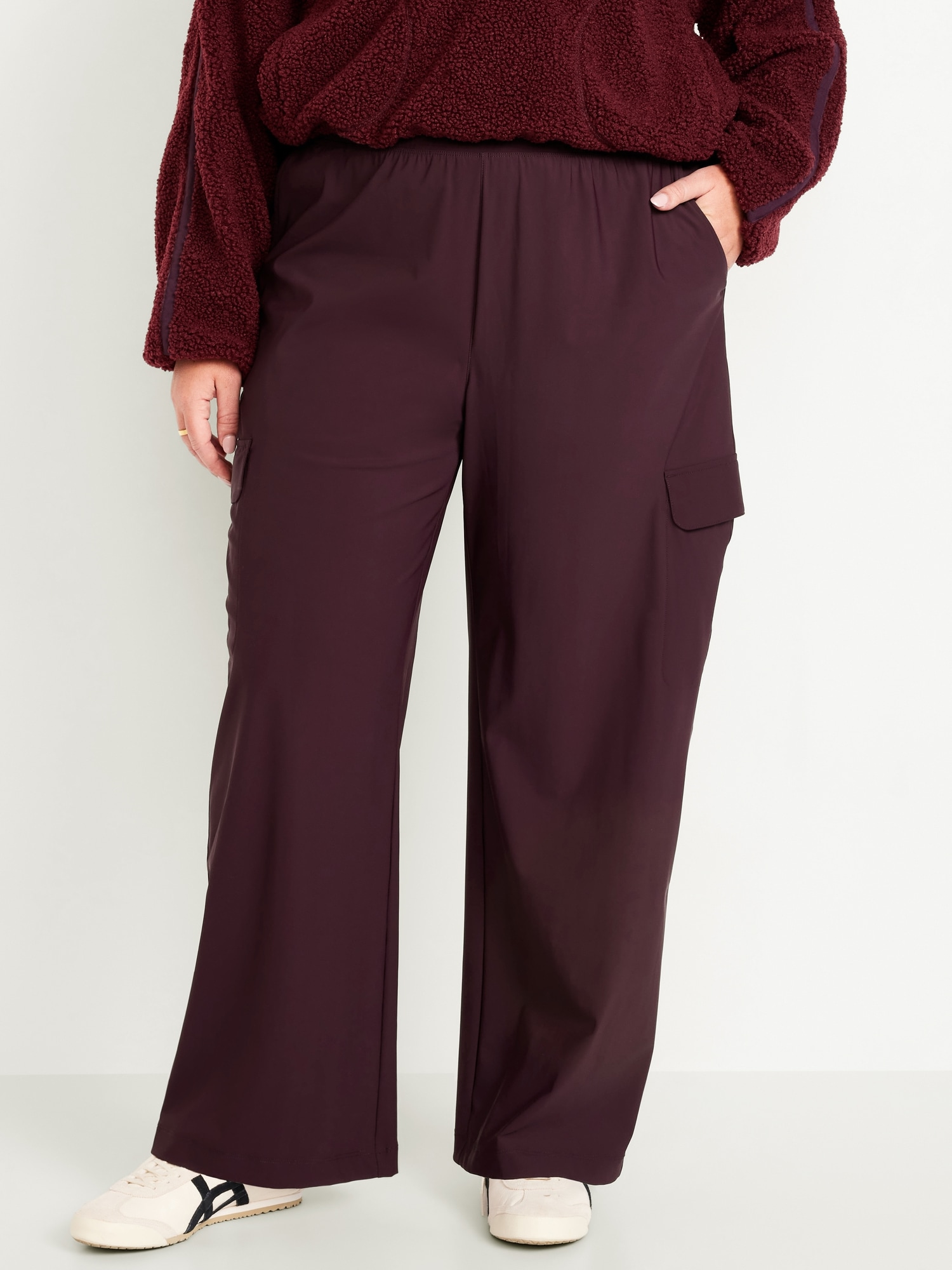 High-Waisted SleekTech Wide-Leg Cargo Pants: Featuring SleekTech. Polished and lightweight, with serious stretch.elastic waist, hip pockets, flap-cargo pockets at thigh, go-dry wicks moisture, breathable, pull-on style, #569718